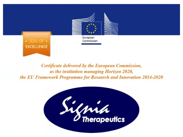 We are very proud to announce that Signia Therapeutics has been awarded the Seal of Excellence by the EU H2020 Framework Programme for Research and Innovation.